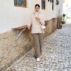 -برای اندازهگیری قد لباس، متر را از بالاترین نقطه شانه (نقطه اتصال گردن و شانه) تا انتهای لباس گرفته می شود.